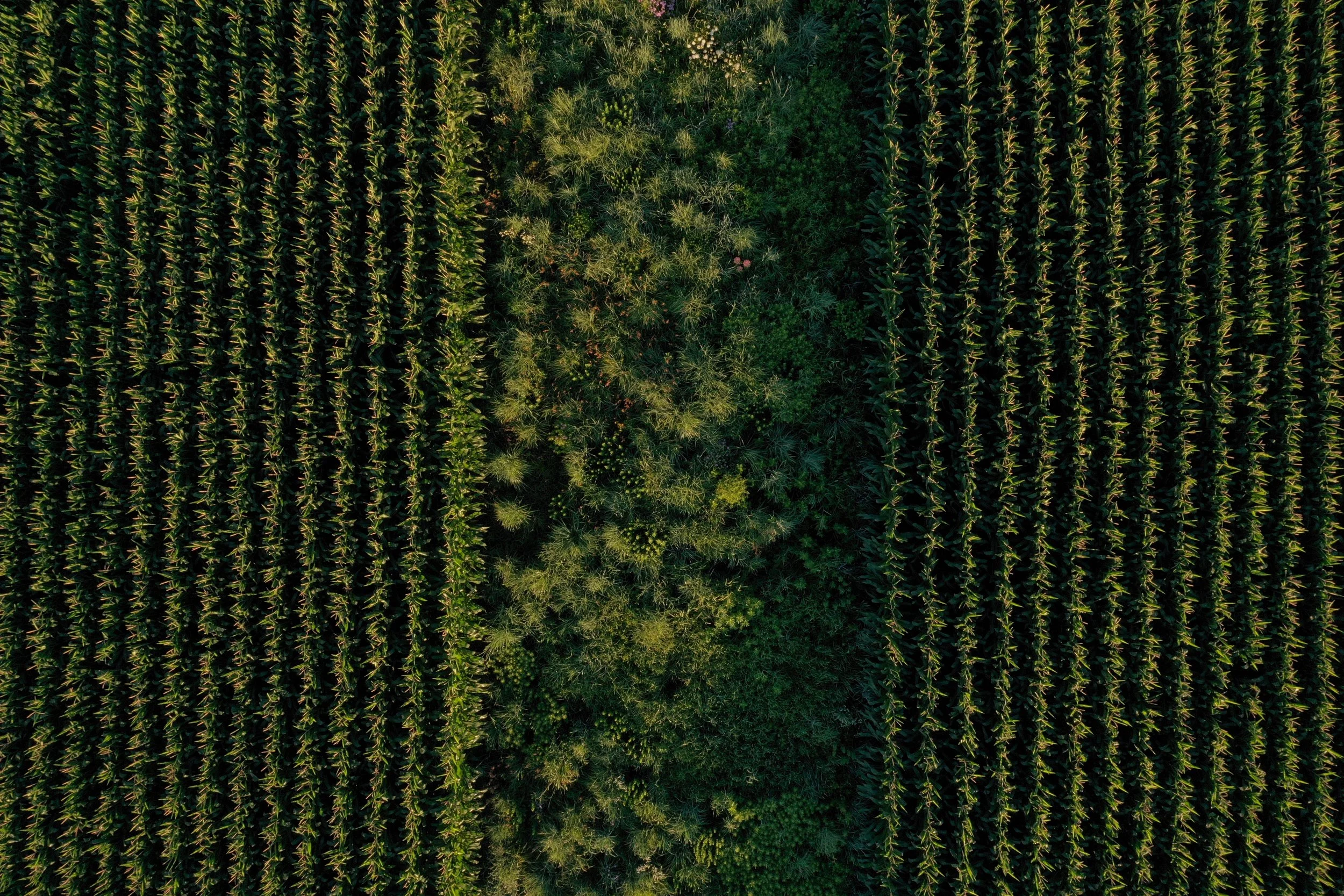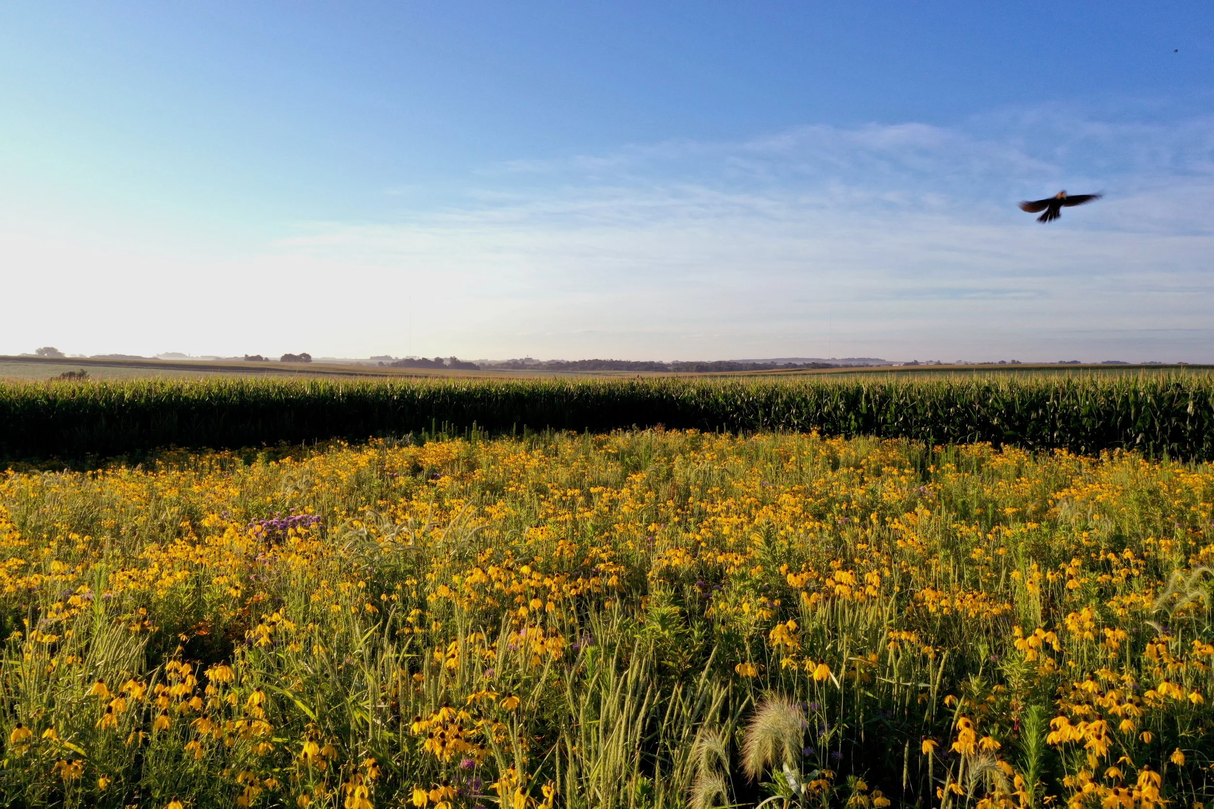 Drone photography from working with Iowa State University Science-based Trials of Rowcrops Integrated with Prairie Strips (STRIPS)